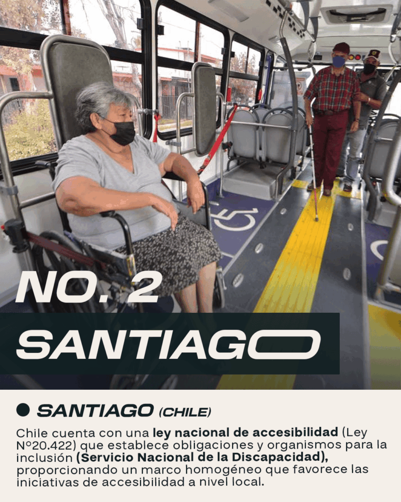 Chile cuenta con una ley nacional de accesibilidad (Ley N°20.422) que establece obligaciones y organismos para la inclusión (Servicio Nacional de la Discapacidad), proporcionando un marco homogéneo que favorece las iniciativas de accesibilidad a nivel local.