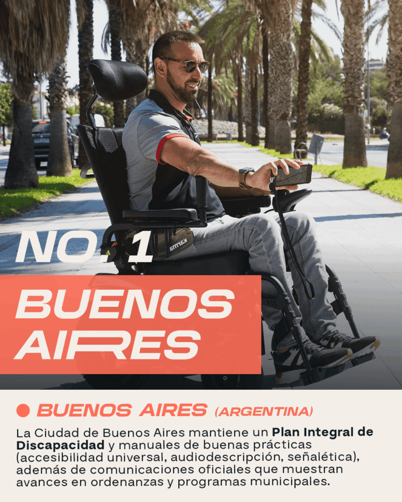 La Ciudad de Buenos Aires mantiene un Plan Integral de Discapacidad y manuales de buenas prácticas (accesibilidad universal, audiodescripción, señalética), además de comunicaciones oficiales que muestran avances en ordenanzas y programas municipales.