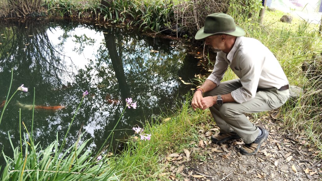 Incluso el estanque tiene su propia historia mágica de vida. Al construirlo, decidieron no poner peces. Pero los peces, y después las tortugas, aparecieron solos. Esto ocurre porque aves acuáticas, como el pato mexicano y la garza, llegan a dormir y traen consigo huevos de peces pegados a sus patas, dispersando a las especies a otros cuerpos de agua.