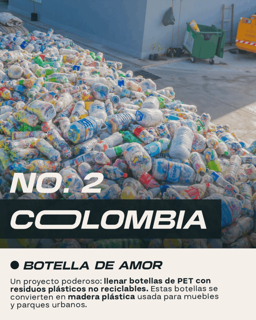 Proyecto que reutiliza botellas de plástico llenas de residuos plásticos no reciclables para crear madera plástica usada en muebles o mobiliario urbano. Aunque no es específicamente navideño, esta técnica puede adaptarse a actividades de temporada por ejemplo, talleres de “botellas de amor” como parte de eventos comunitarios de fin de año.