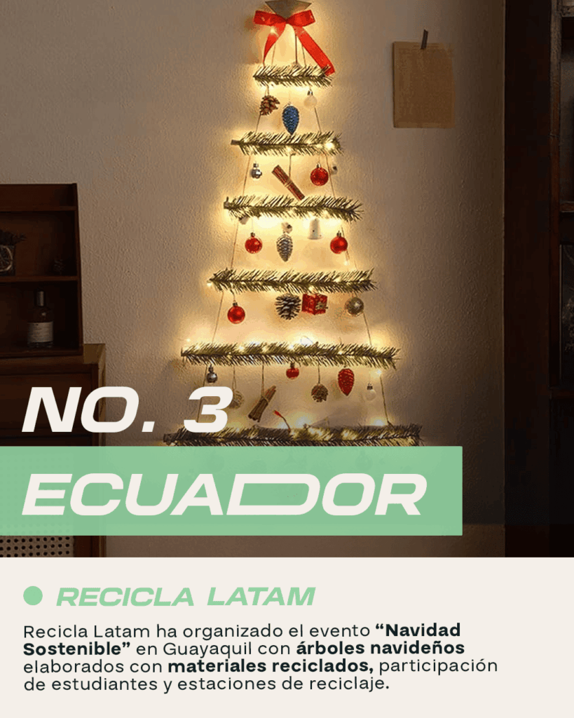 La temporada navideña, tradicionalmente marcada por el alto consumo, también tiene un camino hacia la sostenibilidad y la conciencia ecológica a través de la creatividad y el reciclaje y hay países en Latinoamérica que no se han quedado atrás en los proyectos para hacer de esta Navidad y festejos de fin de año más ecológicos, dando opciones para que no haya pretextos para generar más residuos.