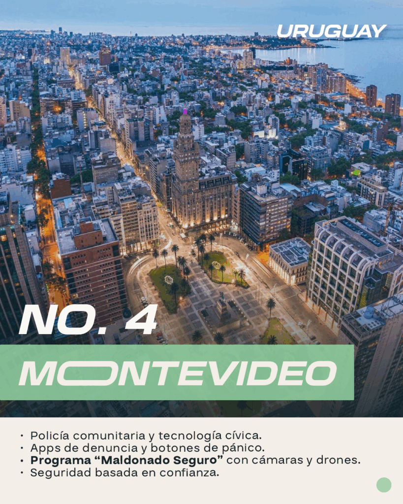 Uruguay ha apostado también por tecnología cívica, integrando aplicaciones móviles para denuncias y botones de pánico en zonas residenciales.