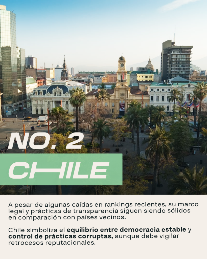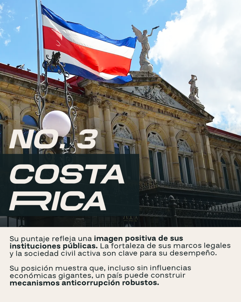De acuerdo con los datos publicados por Transparency International en el Índice de Percepción de la Corrupción (CPI) 2025, estos son los países de Latinoamérica con los mejores puntajes (donde 100 es “muy limpio” y 0 es “altamente corrupto”):